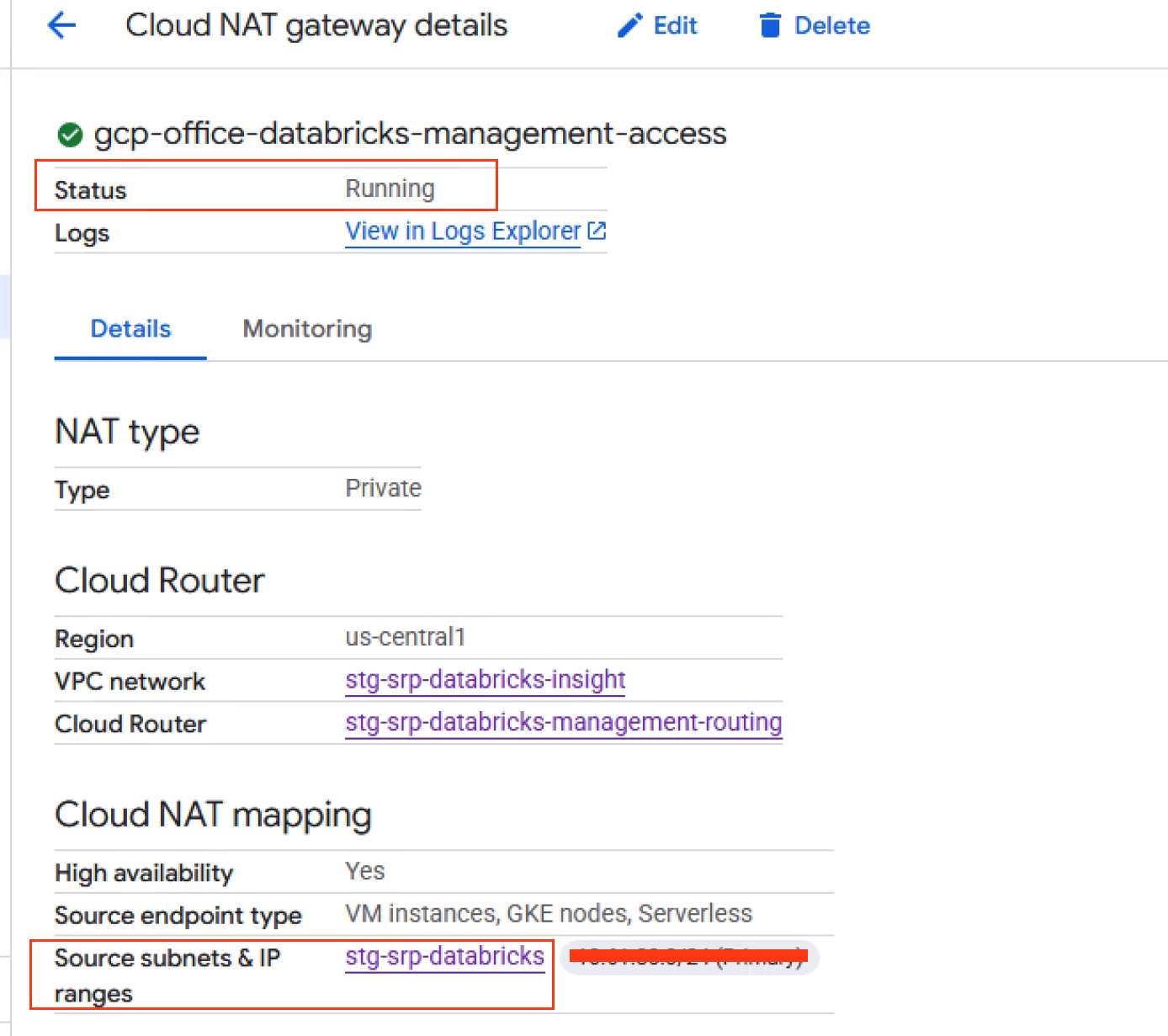Private Zone: gcp.databricks.com