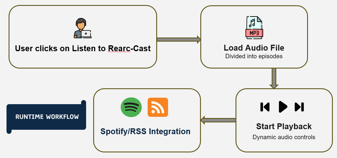 To tackle these goals, I built Rearc-Cast around three key AI-driven features. Each one integrates smoothly with our blog and was thoughtfully designed to make our content experience richer and more intuitive.